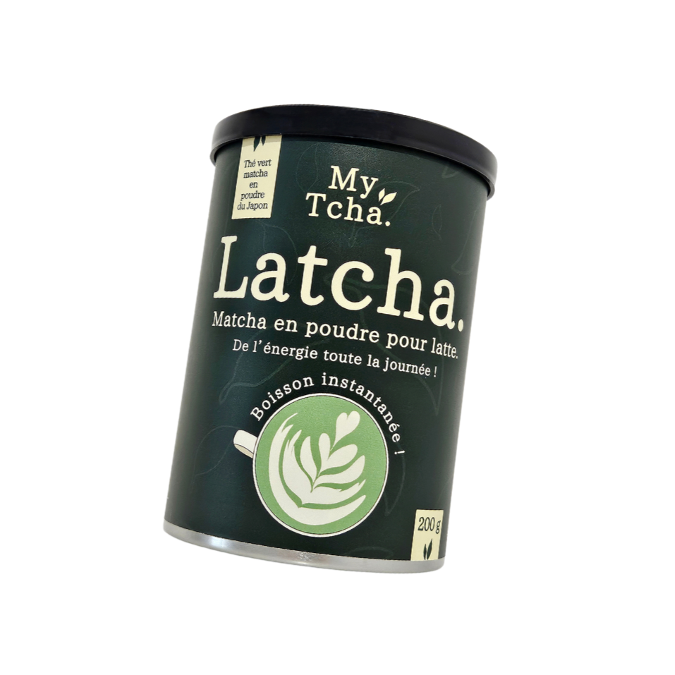 Nous sommes très fières de vous présenter notre bébé : Latcha. Une préparation en poudre de matcha spécialement conçue pour les lattes, à mélanger directement dans du lait chaud. Contrairement aux préparations classiques qui nécessitent d’être diluées dans de l’eau à une certaine température puis fouetté énergiquement dans un bol adapté, MyTcha s’intègre parfaitement au lait de votre choix et à votre mug préféré. C'est prêt en quelque seconde avec un goût sucré à faire tomber par terre.